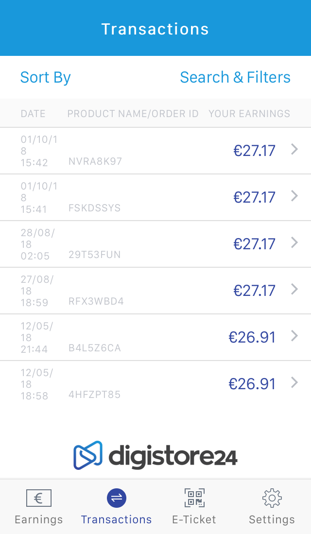 Con la aplicación de Digistore24, puedes darle seguimiento a tus ingresos y transacciones en tiempo real en cualquier smartphone, verificar e-tickets y configurar notificaciones para informarte sobre tus ventas.
