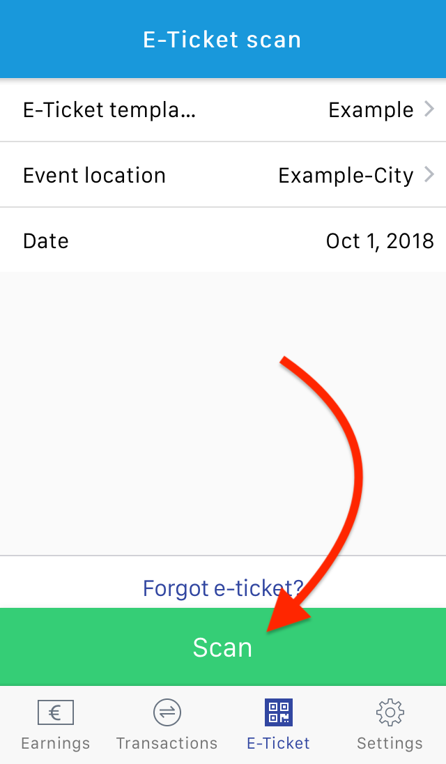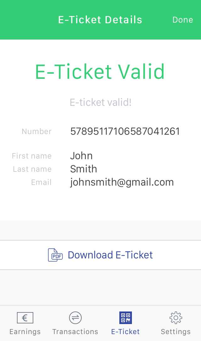 Usando tu cámara y el código QR en el recibo, puedes validar fácilmente los e-tickets que has vendido.