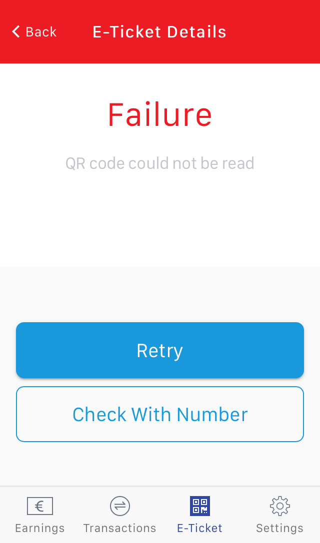 Si el escaneado falla repetidamente, también puedes ingresar el número del e-ticket manualmente para poder validarlo.